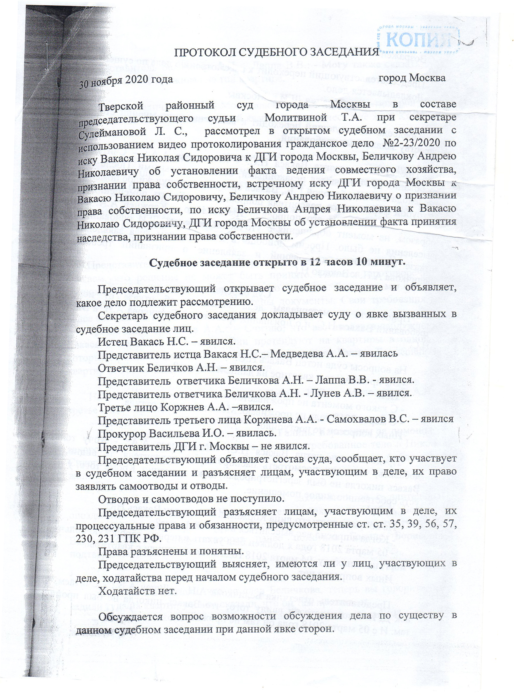 Протокол судебного заседания Тверского районного суда города Москвы от 30/11/2020 года, PDF - формат
