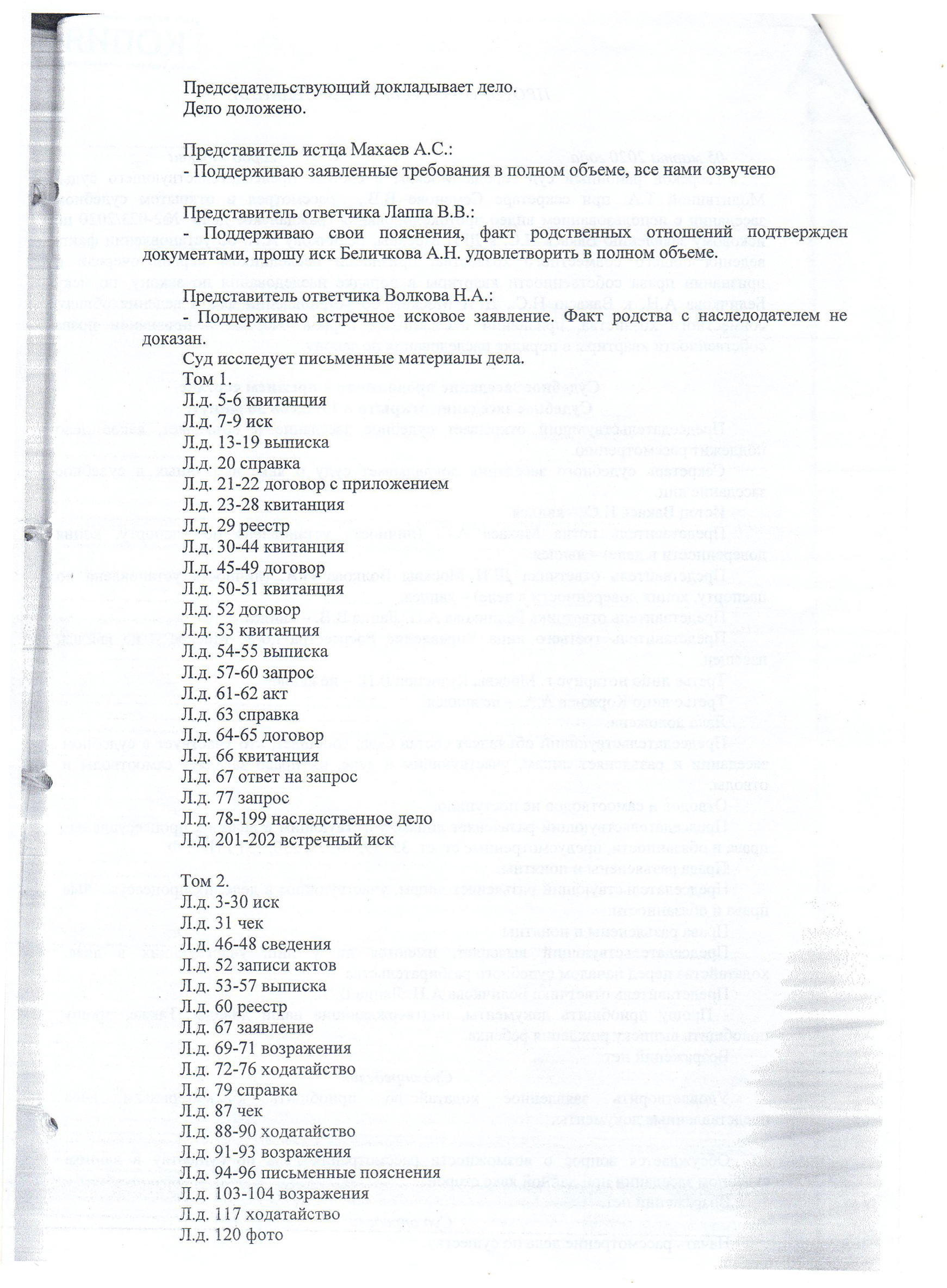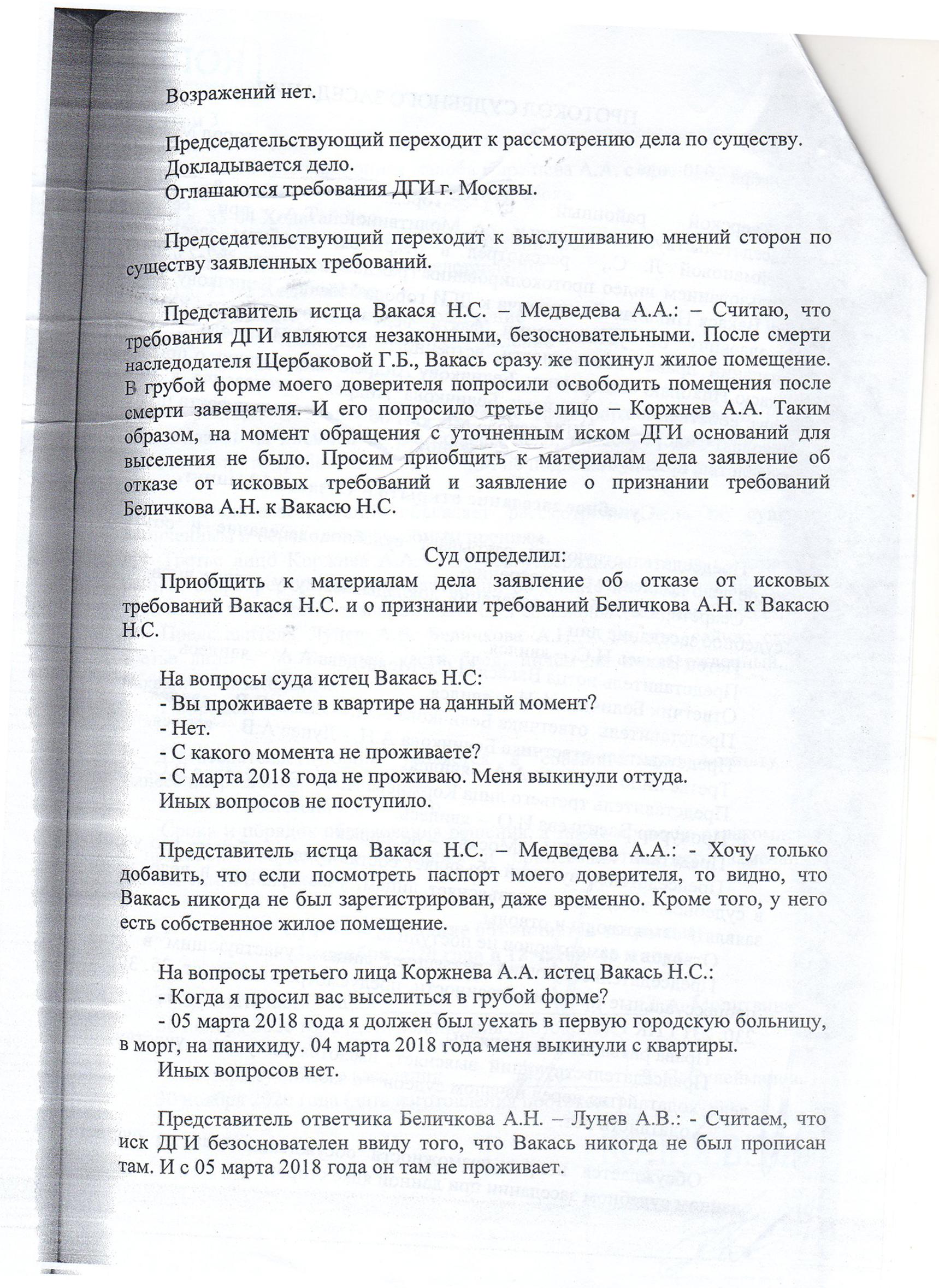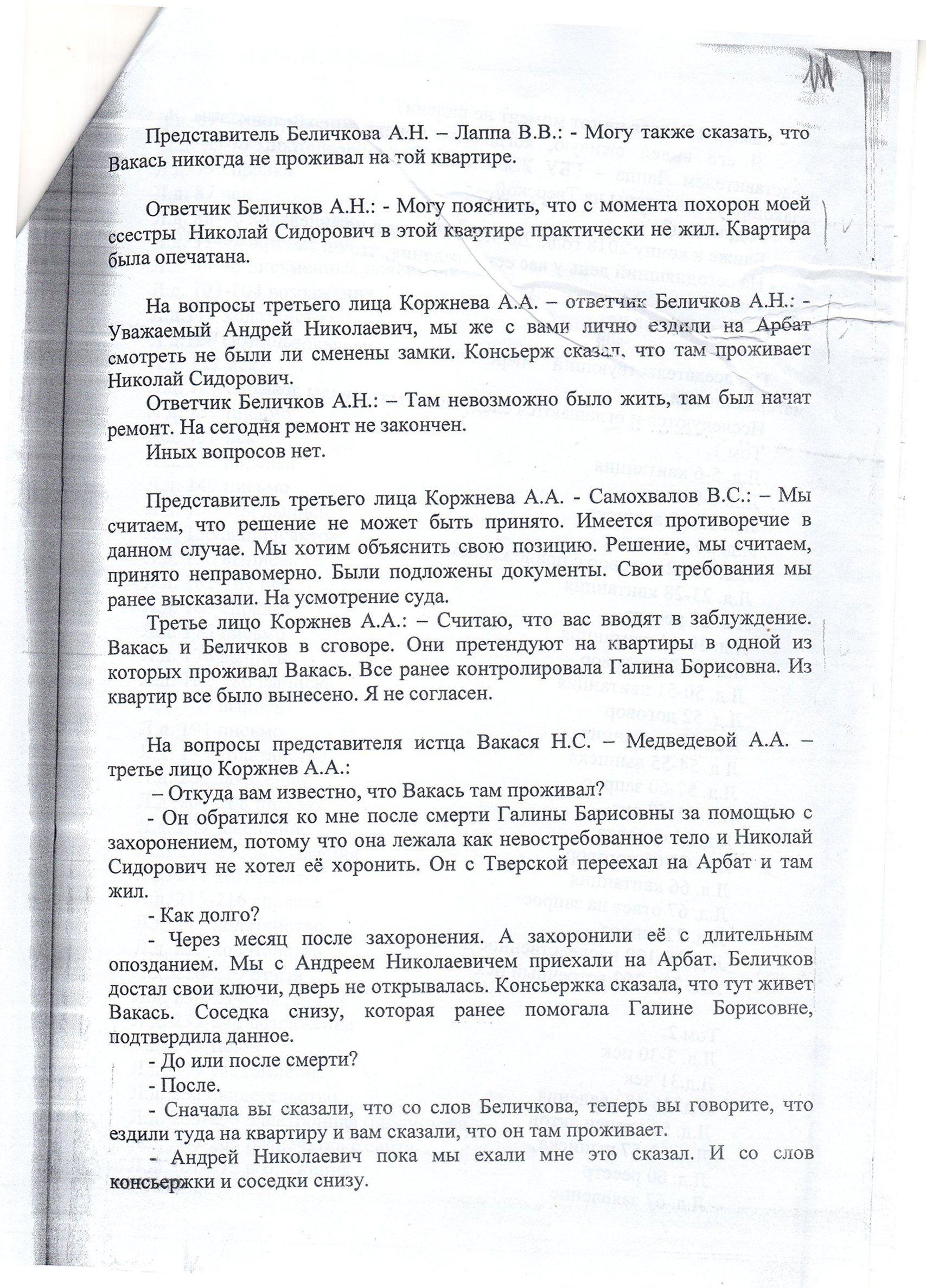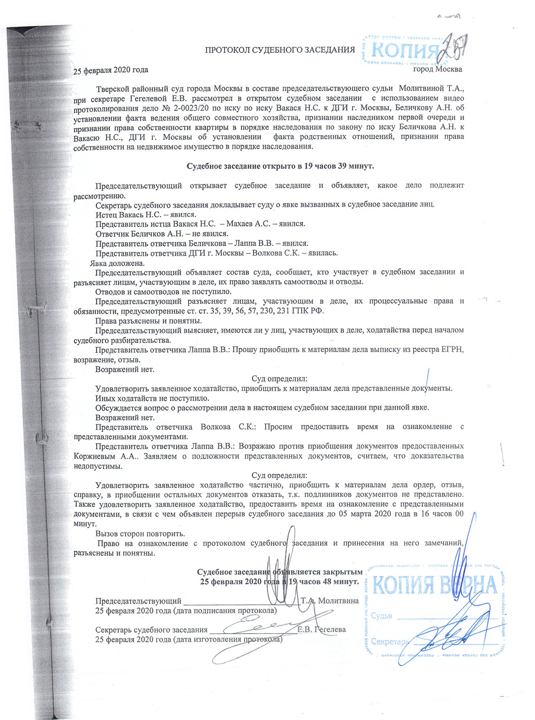 Ходатайство о приобщении дополнительного доказательства (мошенников юриста Лаппа В.В. и Беличкова А.Н.) в гражданское (наследственное) дело № 02-23/2020, PDF - форматПротокол судебного заседания Тверского районного суда города Москвы от 14/01/2021 года, страница 1/7