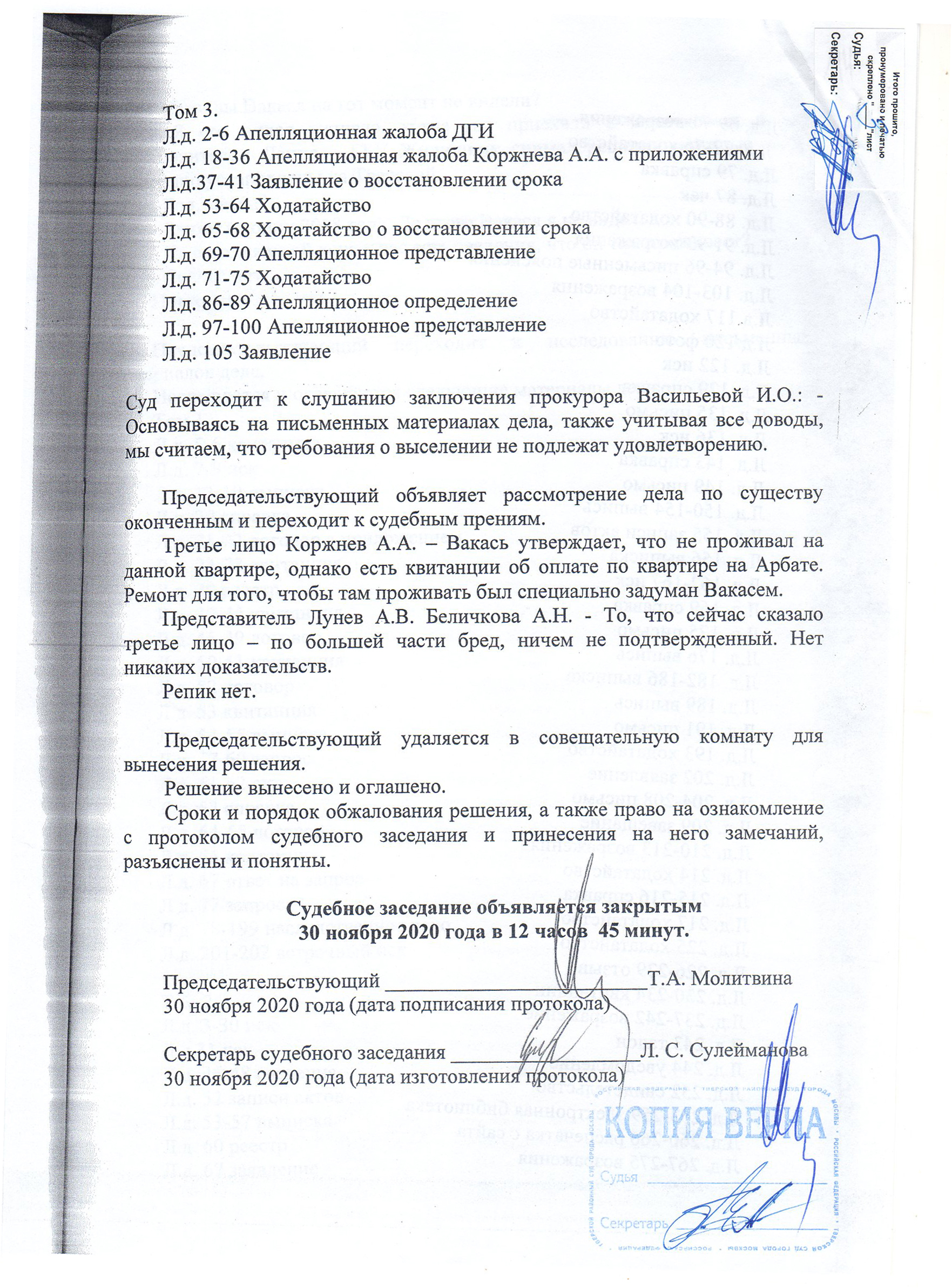Протокол судебного заседания Тверского районного суда города Москвы от 30/11/2020 года, страница 3/6
