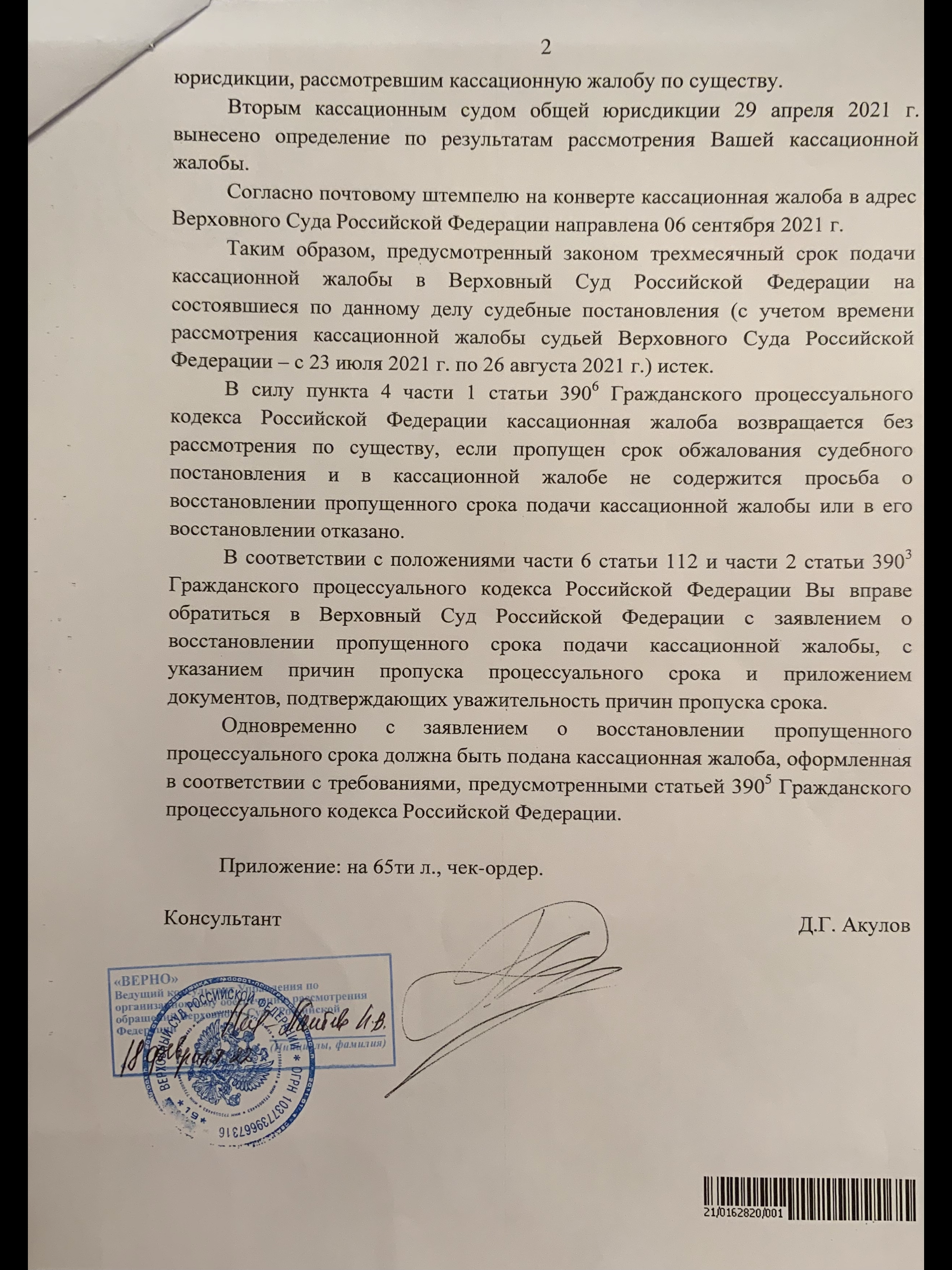 Ответ Верховного Суда Российской Федерации № 5-КФ21-3549-К2 от 15 сентября 2021 года, страница 3/3Ответ Верховного Суда Российской Федерации № 5-КФ21-3549-К2 от 15 сентября 2021 года, PDF - формат