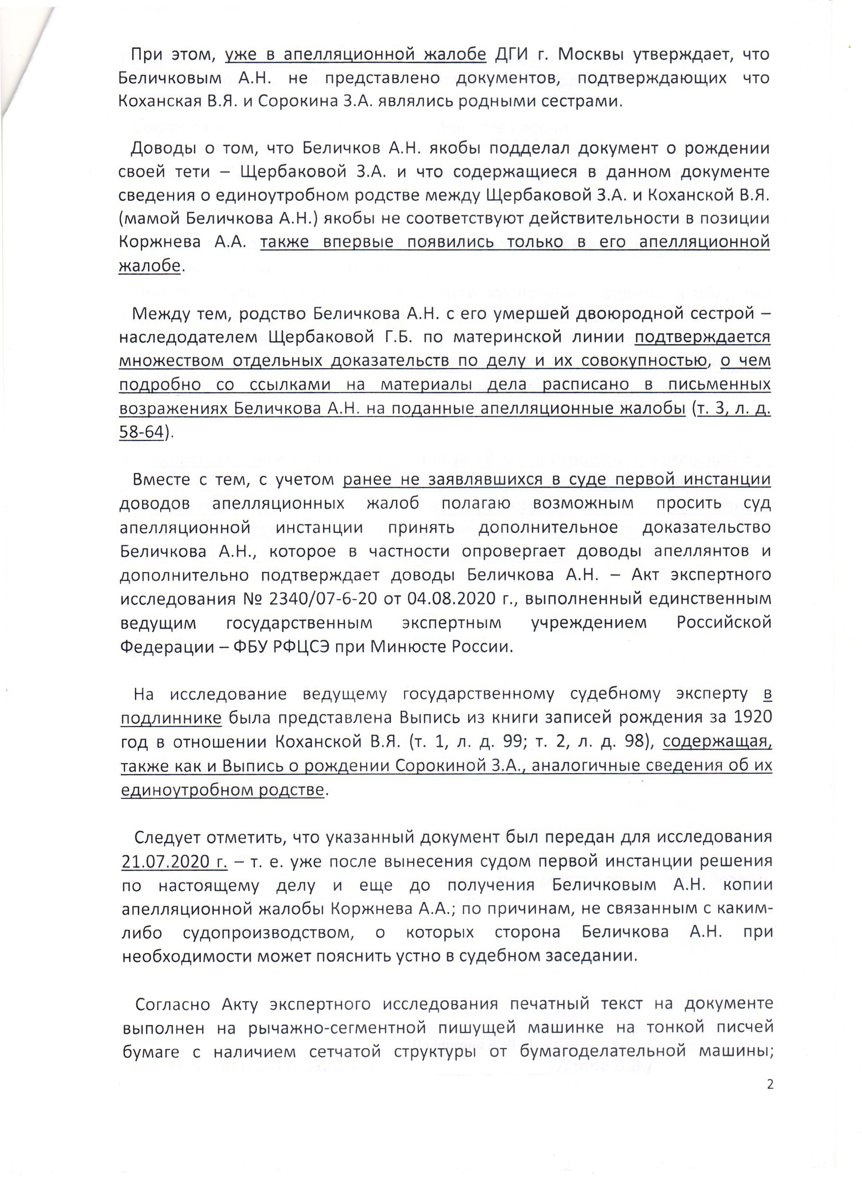 Ходатайство о приобщении дополнительного доказательства (мошенников юриста Лаппа В.В. и Беличкова А.Н.) в гражданское (наследственное) дело № 02-23/2020, страница 1/3Ходатайство о приобщении дополнительного доказательства (мошенников юриста Лаппа В.В. и Беличкова А.Н.) в гражданское (наследственное) дело № 02-23/2020, страница 2/3