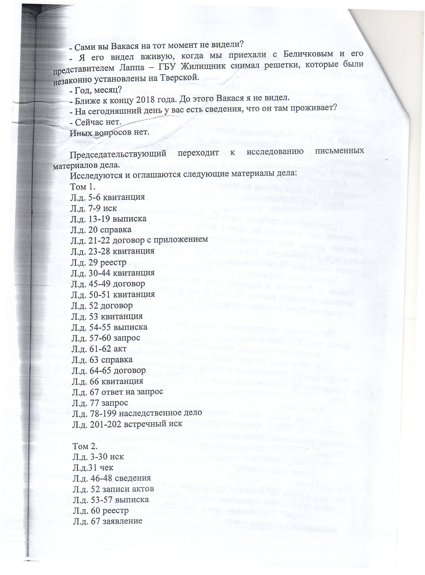 Протокол судебного заседания Тверского районного суда города Москвы от 30/05/2019 года, страница 2/2