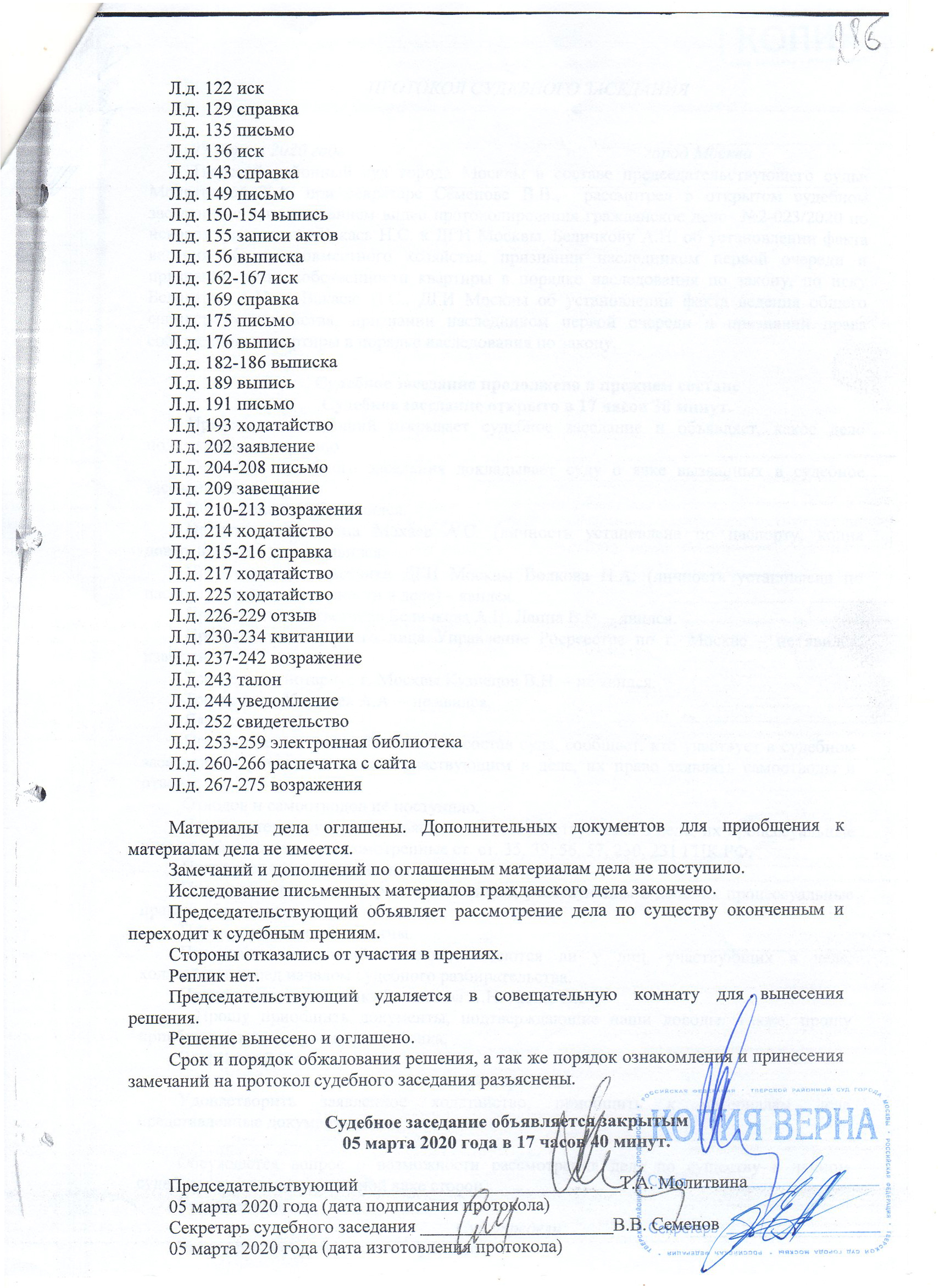 Решение Тверского районного суда г. Москвы от 05/03/2020 года по гражданскому (наследственному) делу № 02-23/2020, страница 5/6Решение Тверского районного суда г. Москвы от 05/03/2020 года по гражданскому (наследственному) делу № 02-23/2020, страница 6/6